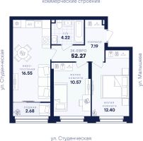 Евротрёхкомнатная квартира площадью 71 м2 (120) на 16 этаже - последняя квартира в секции 2. "Комсомольская 67" - семейный квартал в Кировском районе Екатеринбурга, во Втузгородке, в районе улиц Комсомольская / Педагогическая, до ул. Малышева 5 мин. пешком. Особенности квартиры Просторная спальня около 20 м2, с местом под гардероб; кухня-гостиная 18 м2, два санузла, система вентиляции с рекуперацией тепла. Инфраструктура В отдельной секции дома расположено отделение детской муниципальной поликлиники 13. На первых этажах расположились продуктовые магазины, медицинская лаборатория и другие коммерческие структуры. В шаговой доступности: детский сад 34 и школа 134, медицинский центр "Рекреаль", фитнес клуб с бассейном "Лагом Джим", ресторан "Мёд", бильярдный клуб "Паблик Клуб Бильярдс". Инженерные системы Дому присвоен наивысший класс энергоэффективности А++. Квартиры оборудованы приточно-вытяжной вентиляцией с рекуперациеи тепла. Забор свежего воздуха происходит с крыши здания, что исключает попадание городских и природных загрязнителей, проходит сквозь фильтры, а также дополнительно подогревается до комфортной температуры. Уникальная система разводки вентиляционных труб исключает попадание чужих запахов в квартиру. Энергосберегающие окна сохраняют тепло зимой и не нагревают квартиру летом. Микрорайон Университетский обслуживается автономной современной газовой котельной с немецким оборудованием. Подача тепла в дома регулируется в зависимости от температуры на улице. Паркинг Вместительный наземный и одноуровневый подземный паркинг, в котором предусмотрены специальные "семейные" места и зоны для хранения мотоциклов и велосипедов. Попасть в подземный паркинг можно с любого этажа жилого комплекса, спустившись на лифте. Благоустройство Двор закрыт от машин, по периметру его ограждают жилые дома и здание поликлиники, образующие замкнутый контур. На территории выделены отдельные зоны отдыха, игровые и спортивные площадки для детей и подростков. Безопасность На территории ведется круглосуточное видеонаблюдение. Данные поступают на централизованный пост охраны. Наружные камеры установлены по периметру комплекса, в паркинге, входных холлах и лифтах.