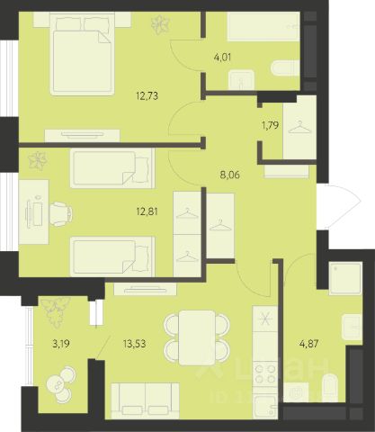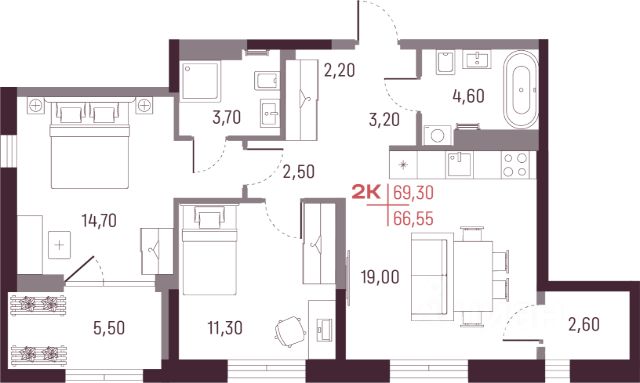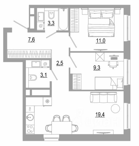 Удобная планировка - нет лишних углов, комнаты правильной формы
