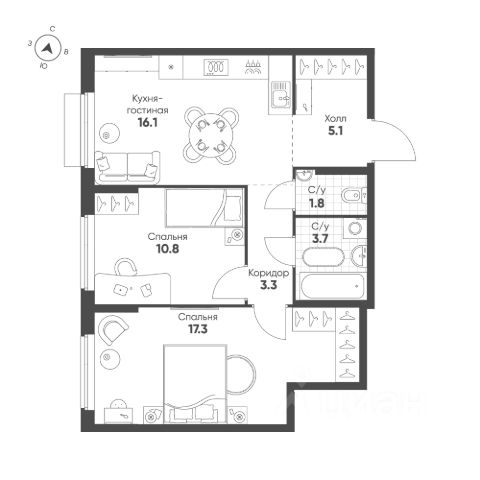 ПРОДАМ очень светлую и уютную Евро 2-х комнатную квартиру с большой кухней-гостиной и вместительной спальней в самом молодом микрорайоне Екатеринбурга.