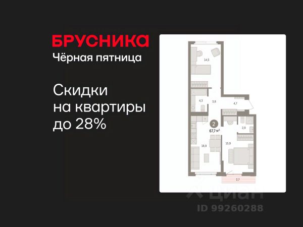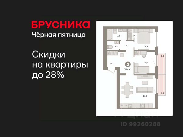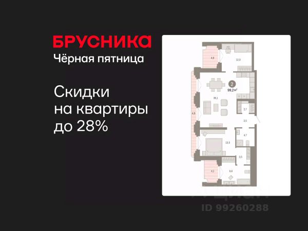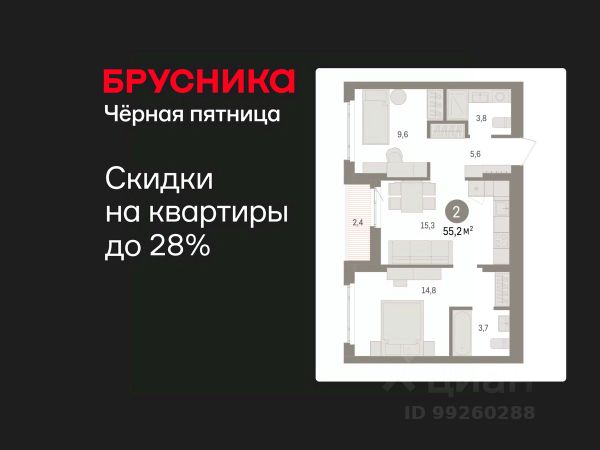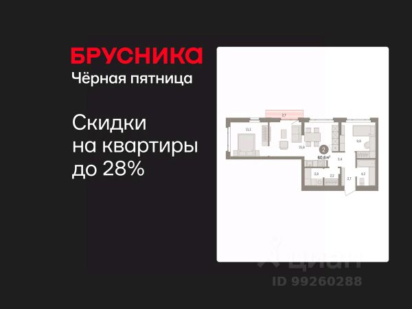Спешите забронировать по этой цене! Предложение ограничено! Стоимость квартиры указана со скидкой, ваша экономия составит 480,000 RUB. Информация по телефону, наши менеджеры вам все расскажут! Двухкомнатная квартира с предчистовой отделкой в ЖК "Квартал Траектория" на 2 этаже. Общая площадь: 60.6 кв.м., жилая: 21 кв.м., площадь просторной кухни-столовой: 21.6 кв.м. Угловая квартира, идеально подойдет любителям тишины и панорамных видов. В квартире один балкон, один совмещенный санузел. Высота потолков 2.82 м. Дом монолитный, многоподъездный, переменной этажности, от 7 до 16 этажей. Квартира находится во 2-й секции высотой 7 этажей в корпусе 1-2. На этаже 8 квартир. В подъезде 1 грузовой лифт. Начало строительства - 4 квартал 2025 года. Окончание строительства - 4 квартал 2027 года. Оформление сделки по договору долевого участия. Квартира с кухней-гостиной и двумя спальнями в квартале "Траектория". Особенности планировки: гардеробная, стартовая цена, разнесённые спальни, предчистовая отделка, постирочная, балкон. квартиры в нашей базе: МНВ01-Ж10.2.6. Квартал "Траектория" строится в границах улиц Билимбаевской, Расточной, Монтажников и Маневровой Раньше здесь находился оборонный завод 5-ЦАРЗ, основанный в 1945 году. После войны он ремонтировал военную и грузовую технику — от "Виллисов" и "Студебекеров" до советских ЗИС-5 и ГАЗ-67. Сортировка — район с развитой инфраструктурой, обжитыми жилыми кварталами разных эпох и большим количеством парков. До центра Екатеринбурга — 20 минут на машине. Туда же можно отправиться на автобусе: ближайшая остановка общественного транспорта — в 4 минутах от "Траектории". Рядом с "Траекторией" расположены магазины, торговый центр, детские сады, школы, поликлиники и полезные сервисы, а также другой проект Брусники — квартал "Депо". Если хочется развлечений, можно отправиться в ТРЦ "Карнавал" и парк с аттракционами "Таганская слобода" — дорога туда займёт не более 10 минут на машине. Квартал "Траектория" — первый этап комплексного развития территории, которую раньше занимали производственные здания. На месте бывших цехов Брусника создаст дружелюбную среду и комфортное пешеходное пространство для всего района. Для озеленения квартала мы подобрали больше 60 видов растений: ольху, липу, клён, иву, грушу, вишню, сирень, барбарис, гортензию, смородину, ирис, декоративные травы. Они цветут в разное время года и постоянно меняют настроение двора. В "Траектории" мы предусмотрели несколько общественных пространств, открытых для всех горожан: встречающий сквер, лесопарк у храма и событийный сквер между домами. Когда захочется тишины и уединения, можно устроить прогулку во внутренних дворах: в них нет машин и посторонних, зато много зелени, света и мест для отдыха. Каждый двор в квартале "Траектория" — продолжение квартиры, только под открытым небом. Здесь можно прогуляться босиком по траве, устроить утреннюю йогу, почитать книгу в гамаке или отправить детей поиграть, не переживая за их безопасность. М