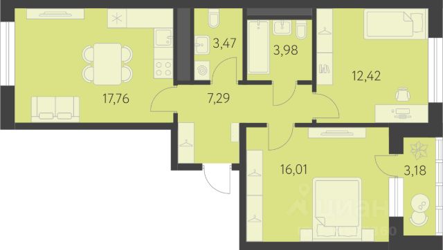 | 🔷 Средняя цена за м2: | 50,6 тыс. ₽/м² |