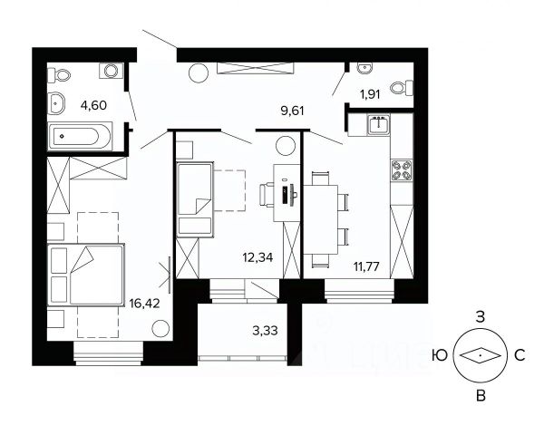 Данный тип планировки подойдёт как для молодой семьи, так и для более старшего поколения.