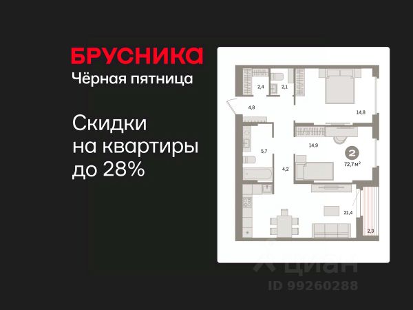 Торопитесь забронировать на этих условиях! Предложение ограничено! Стоимость квартиры указана со скидкой, ваша экономия составит 420,000 RUB. По всем вопросам обращайтесь в офис продаж, мы вам все подробно расскажем!
