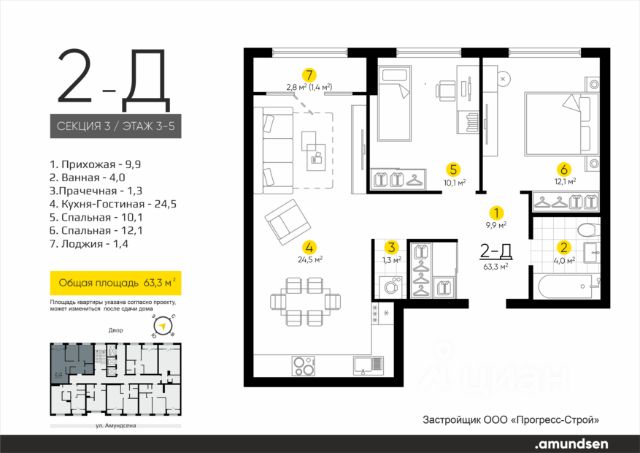О компании: "Прогресс" — девелопер федерального уровня. Создаём современный стиль жизни с 2012 года. Совершенствуем культуру нашего общества. Предвосхищаем ваши ожидания. "Прогресс" - группа компаний полного цикла. Мы проектируем, строим и обслуживаем свои жилые комплексы. Входим в топ - 10 застройщиков по потребительским качествам ЖК по версии "Единый ресурс застройщиков". Мы - обладатель федеральных и европейских наград в сфере недвижимости: Urban Awards, European Property Awards, "Надёжный застройщик России" и др. Новый проект от создателей жилого квартала "Amundsen" "Progress Академический" - это место, где безопасно и уютно. Вы прочувствуете настоящую жизнь в режиме "здесь и сейчас". Удобная локация делает этот проект максимально привлекательным для тех, кто устал от суеты и ограниченных пространств. Безопасный благоустроенный двор, умные планировки и зонирование территории все это позволит почувствовать новый уровень комфорта. Соседство с лесным массивом, улучшает качество воздуха и создает уникальное экологически чистое окружение. Умные планировки. При проектировании дома наши архитекторы закладывают систему SMART- планировок: - Только разумное распределение полезной площади, которое отвечает реальным потребностям человека. Жители экономят деньги на протяжение всей жизни, ведь используется каждый уголок квартиры. - Несущие стены вынесены по периметру квартиры. Это дает возможность осуществлять перепланировку и реализовывать свои архитектурные идеи. - Все комнаты правильной формы, что упрощает расстановку мебели. Благоустроенные дворы. Наполнение двора детально продумано, с учетом потребностей каждого жителя. Детские площадки для разных возрастов, зоны отдыха, зеленые аллеи и пешеходные дорожки. В центре двора предусмотрен амфитеатр для общих встреч жителей и больших мероприятий. Собственная сервисная компания 24/7 поддерживает чистоту территории жилого квартала. Безопасность. Комплексная безопасность является одним из главных преимуществ. Проектом предусмотрено: закрытая придомовая территория без машин и круглосуточное видеонаблюдение без слепых зон, доступ через специальное мобильное приложение. Удобная локация. Инфраструктура обеспечит комфортную жизнь каждому. Это пространство с уникальной образовательной, спортивной и культурной инфраструктурой, необходимой для развития всесторонней личности. Парки и прогулочные зоны Продуктовые магазины "Пятерочка" и "Магнит" Тренажерные залы и фитнес-клубы 4 школы 9 детских садов Остановки общественного транспорта в 10 минутах ходьбы Технические преимущества: - система очистки водопроводной воды до питьевой - система телеметрии - установлены входные двери с тепло-шумоизоляцией - радиаторы отопления - наружные стены с встроенной шумоизоляцией - фасадная дренажная система позволяет избежать затопления фасадов и образования грязевых луж. Способы приобретения квартиры: • С помощью материнского капитала • В ипотеку Забронируйте квартиру по номеру телефона офиса продаж.