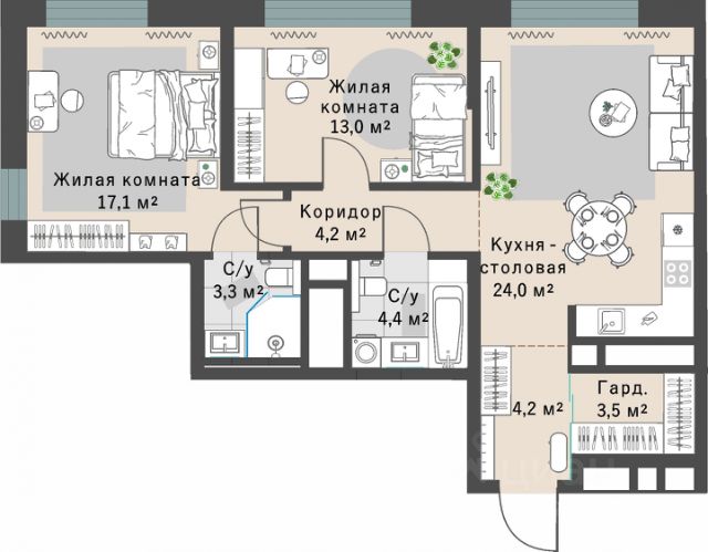 170 713 ₽/м²