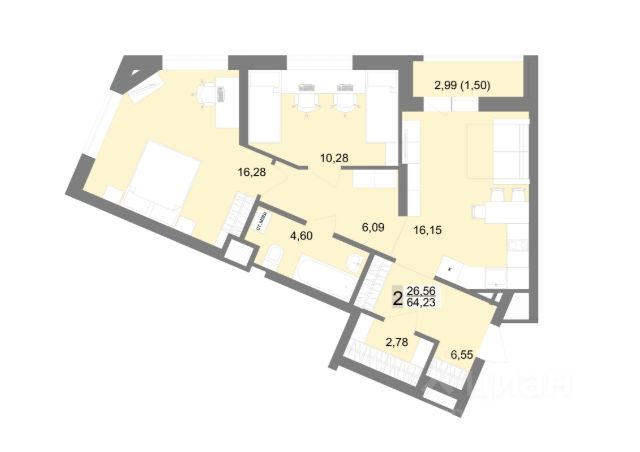 В экологически чистом районе Широкой Речки, всего в 10 км от центра Екатеринбурга, продается 2-комнатная квартира площадью 55.00 кв. м. Квартира находится в 4/3 корпусе жилого комплекса комфорт-класса "ЛЕС" (Застройщик - компания "Железно"). Квартал "ЛЕС" бережно расположен прямо внутри соснового бора. Все преимущества отдыха на природе ежедневно - достаточно выглянуть в окно. Наслаждайтесь уютом загородного дома с комфортом городской среды. Удобная локация в окружении природы: Половинное озеро и чистый сосновый лес в 5 минутах ходьбы; На расстоянии 1 км - автобусная остановка "Широкая речка"; В ближайшее время будет запущено строительство новых автомобильных дорог и организация дополнительных маршрутов общественного транспорта. Живой квартал у леса Лес - главный герой квартала. Дома находятся в окружении соснового бора, а их этажность - до 8 этажей - не превышает крон сосен. В новом жилом комплексе большое внимание уделено заботе о сохранении деревьев и реализации специальных программ по высадке новых, чтобы жители наслаждались прекрасной растительностью каждый день. Комфорт и Умный дом Концепция заботы о лесе и любви к природе продолжается в интерьерах лобби. Здесь преобладают мягкие естественные оттенки, а мебель выполнена из экологичных материалов, передающих естественную текстуру дерева. В каждой квартире установлен кран с питьевой водой, тепло жителям обеспечивает собственная котельная. Управлять своим домом помогает собственное мобильное приложение от застройщика - "Мажордом". Чаты с жильцами, заявки в СК Азбука, бесключевой доступ, IP домофония, оплата ЖКХ. Управляйте домом из любой точки мира в один клик! Благоустройство На территории комплекса появится открытый парк, площадью в 6,3 Га, прогулки по которому станут для жителей любимым занятием. Парковое пространство предусматривает различные сценарии для активного и спокойного отдыха: пешеходные экотропы, протяженные веломаршруты, специальные игровые и спортивные площадки, релакс-зоны и места для творчества. Все элементы благоустройства выполнены из экологичных высококачественных материалов. Отдых на свежем воздухе в приятном уединении или в кругу веселой компании друзей доступен жителям живых кварталов в любое время, когда они этого пожелают.