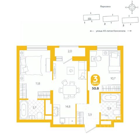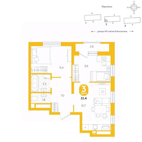 Евроформат объединяет кухню и гостиную в одно просторное помещение, что создает ощущение свободы и открытости пространства. Такая планировка предлагает гибкость в оформлении интерьера, позволяя обустроить зону в соответствии с личными предпочтениями, будь то уютный уголок для чтения или стильная обеденная зона. Идеально для тех, кто стремится к гармонии практичности и эстетики в своем доме. Квартира располагается в ЖК "Комсомольский" — жилом комплексе комфорт-класса. Здесь вы будете наслаждаться беззаботной жизнью, ведь ваш дом — воплощение практичности, безопасности и надежности. Для удобства предусмотрены колясочные на первых этажах домов, где можно оставить велосипеды и коляски в тепле. За безопасность отвечают система электронных ключей и видеонаблюдение. Еще здесь собственная котельная, поэтому в доме всегда будут горячая вода и оплата счетов только за фактически потребленное тепло. ПРЕИМУЩЕСТВА ЖК На этаже 15 квартир Красивые и функциональные парадные с мягкой и стильной зоной для отдыха, книгообменником, встроенными почтовыми ящиками и нишами для сумок Колясочные с доступом по ключу IP-домофоны Тихие лифты с плавным ходом О ПРОЕКТЕ ЖК "Комсомольский" строится в спокойном Кировском районе Екатеринбурга в границах улиц Сыромолотова — Рассветная — 40-лет Комсомола. Комплекс состоит из трех домов переменной этажности, которые выделяются динамичными линиями, выразительными фасадами и стильными лоджиями. ЛОКАЦИЯ Всё, что необходимо для повседневной жизни, находится недалеко от дома: школы, детские сады, продуктовые магазины, фитнес-клубы. Дорога до центра города на машине займет всего 10 минут — достаточно повернуть с улицы 40-летия Комсомола на улицу Владимира Высоцкого. Рядом с этим перекрестком начинается "Тропа здоровья" — большой терренкур вдоль "Каменных палаток". 10 мин до центра 3-4 минуты до школы No 82, гимназии No 176 4-5 минут до детских садов No 208, No 583, 266 20 мин до Свердловского областного медицинского колледжа и Центральной городской больницы No 7 В рамках стратегического развития района на первых этажах домов появятся коммерческие помещения, в которых откроются магазины и кафе. Следует учесть, что к 2030 году в Кировском районе планируется формирование регионального рекреационно-оздоровительного кластера, строительство ветки метро, расширение и модернизация старых промышленных зон социальной и бизнес-инфраструктуры, что приведет к созданию комфортной среды для жизни. Кроме того, в стратегию входит развитие Шарташского лесного парка как центра регионального и международного туризма. СПОСОБЫ ПОКУПКИ Ипотека: подберем выгодные условия в нескольких банках, чтобы вы могли выбрать лучшее Материнской капитал: можно использовать в качестве первоначального взноса Рассрочка: платите частями без % Сертификаты: позволяют оплатить часть стоимости квартиры О КОМПАНИИ "Паритет Девелопмент" — это современный и ответственный подход к реализации проектов в сфере жилищного строительства. Компания формирует сре