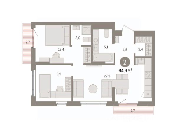 Квартира с кухней-гостиной и двумя спальнями в квартале "Депо". Особенности планировки: второй санузел, гардеробная, вид во двор, разнесённые спальни, предчистовая отделка, балкон. квартиры в нашей базе: ДЕП04-Ж8.6.1. Квартал "Депо" расположен в активно развивающейся части Сортировки, на месте, где раньше был завод "Электротранс". Преимущества Сортировки — развитая инфраструктура. В пешей доступности — супермаркеты, остановки городского транспорта, поликлиники, детские сады, школы, гимназии, торговые центры, автоцентры, рынок с большим и доступным по стоимости выбором товаров, парк РЖД и парк с аттракционами Таганская Слобода. Квартал "Депо" расположен в границах улиц Пехотинцев — Таватуйская — Сортировочная — Новая (проектируется). Благоустройство квартала основано на трёх принципах. Первый — особое внимание к воде. Архитекторы Брусники создадут внутри застройки систему дождевых садов, которые будут фильтровать сток (в том числе с крыш зданий) и снижать нагрузку на ливневую канализацию . Второй принцип — разнообразие. Мы высадим на улицах ивы, липы, яблони разных сортов, спиреи, лапчатку и дерен, а во дворах — березы, липы, черёмухи, пузыреплодник, кизильник и манчжурский орех, который в Екатеринбурге почти не представлен. Третий принцип — зонирование. Центральный бульвар мы насытим площадками для игр детей и спокойного отдыха взрослых, на площади перед детским садом расположим окруженные деревьями плэйхабы, летние веранды кафе, открытое пространство с запоминающимся артом. #2SC8TA