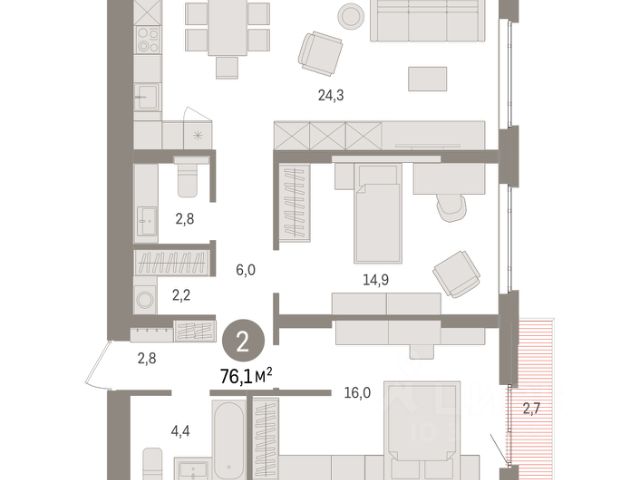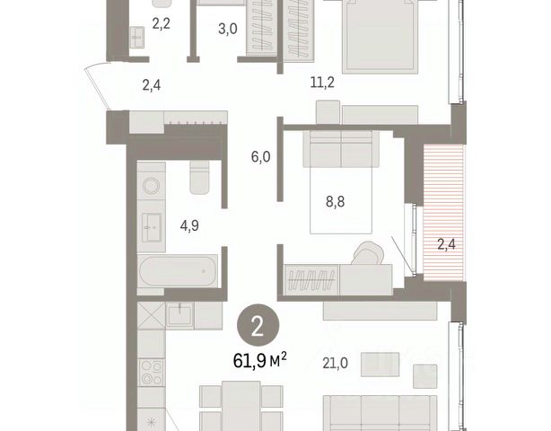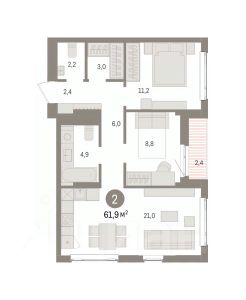 Квартира с кухней-гостиной и двумя спальнями в квартале "Депо". Особенности планировки: второй санузел, гардеробная, вид во двор, разнесённые спальни, предчистовая отделка, балкон. квартиры в нашей базе: ДЕП04-Ж8.6.1. Квартал "Депо" расположен в активно развивающейся части Сортировки, на месте, где раньше был завод "Электротранс". Преимущества Сортировки — развитая инфраструктура. В пешей доступности — супермаркеты, остановки городского транспорта, поликлиники, детские сады, школы, гимназии, торговые центры, автоцентры, рынок с большим и доступным по стоимости выбором товаров, парк РЖД и парк с аттракционами Таганская Слобода. Квартал "Депо" расположен в границах улиц Пехотинцев — Таватуйская — Сортировочная — Новая (проектируется). Благоустройство квартала основано на трёх принципах. Первый — особое внимание к воде. Архитекторы Брусники создадут внутри застройки систему дождевых садов, которые будут фильтровать сток (в том числе с крыш зданий) и снижать нагрузку на ливневую канализацию . Второй принцип — разнообразие. Мы высадим на улицах ивы, липы, яблони разных сортов, спиреи, лапчатку и дерен, а во дворах — березы, липы, черёмухи, пузыреплодник, кизильник и манчжурский орех, который в Екатеринбурге почти не представлен. Третий принцип — зонирование. Центральный бульвар мы насытим площадками для игр детей и спокойного отдыха взрослых, на площади перед детским садом расположим окруженные деревьями плэйхабы, летние веранды кафе, открытое пространство с запоминающимся артом. #zSCVTA