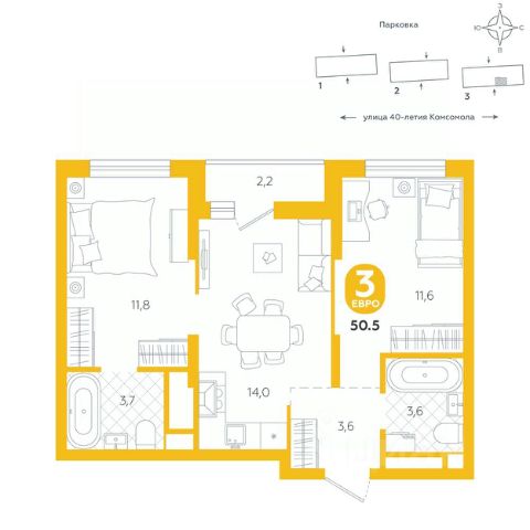Евроформат объединяет кухню и гостиную в одно просторное помещение, что создает ощущение свободы и открытости пространства. Такая планировка предлагает гибкость в оформлении интерьера, позволяя обустроить зону в соответствии с личными предпочтениями, будь то уютный уголок для чтения или стильная обеденная зона. Идеально для тех, кто стремится к гармонии практичности и эстетики в своем доме. Квартира располагается в ЖК "Комсомольский" — жилом комплексе комфорт-класса. Здесь вы будете наслаждаться беззаботной жизнью, ведь ваш дом — воплощение практичности, безопасности и надежности. Для удобства предусмотрены колясочные на первых этажах домов, где можно оставить велосипеды и коляски в тепле. За безопасность отвечают система электронных ключей и видеонаблюдение. Еще здесь собственная котельная, поэтому в доме всегда будут горячая вода и оплата счетов только за фактически потребленное тепло. ПРЕИМУЩЕСТВА ЖК На этаже 15 квартир Красивые и функциональные парадные с мягкой и стильной зоной для отдыха, книгообменником, встроенными почтовыми ящиками и нишами для сумок Колясочные с доступом по ключу IP-домофоны Тихие лифты с плавным ходом О ПРОЕКТЕ ЖК "Комсомольский" строится в спокойном Кировском районе Екатеринбурга в границах улиц Сыромолотова — Рассветная — 40-лет Комсомола. Комплекс состоит из трех домов переменной этажности, которые выделяются динамичными линиями, выразительными фасадами и стильными лоджиями. ЛОКАЦИЯ Всё, что необходимо для повседневной жизни, находится недалеко от дома: школы, детские сады, продуктовые магазины, фитнес-клубы. Дорога до центра города на машине займет всего 10 минут — достаточно повернуть с улицы 40-летия Комсомола на улицу Владимира Высоцкого. Рядом с этим перекрестком начинается "Тропа здоровья" — большой терренкур вдоль "Каменных палаток". 10 мин до центра 3-4 минуты до школы No 82, гимназии No 176 4-5 минут до детских садов No 208, No 583, 266 20 мин до Свердловского областного медицинского колледжа и Центральной городской больницы No 7 В рамках стратегического развития района на первых этажах домов появятся коммерческие помещения, в которых откроются магазины и кафе. Следует учесть, что к 2030 году в Кировском районе планируется формирование регионального рекреационно-оздоровительного кластера, строительство ветки метро, расширение и модернизация старых промышленных зон социальной и бизнес-инфраструктуры, что приведет к созданию комфортной среды для жизни. Кроме того, в стратегию входит развитие Шарташского лесного парка как центра регионального и международного туризма. СПОСОБЫ ПОКУПКИ Ипотека: подберем выгодные условия в нескольких банках, чтобы вы могли выбрать лучшее Материнской капитал: можно использовать в качестве первоначального взноса Рассрочка: платите частями без % Сертификаты: позволяют оплатить часть стоимости квартиры О КОМПАНИИ "Паритет Девелопмент" — это современный и ответственный подход к реализации проектов в сфере жилищного строительства. Компания формирует сре