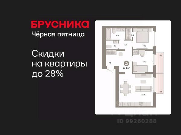 Торопитесь оформить бронирование на этих условиях! Срок акции ограничен! Стоимость квартиры указана со скидкой, ваша экономия составит 410,000 RUB. По всем вопросам обращайтесь в офис продаж, мы вам все подробно расскажем! Квартира с кухней-гостиной и двумя спальнями в квартале "Депо". Особенности планировки: второй санузел, разнесённые спальни, предчистовая отделка, балкон. квартиры в нашей базе: ДЕП04-Ж1.7.4. Квартал "Депо" расположен в активно развивающейся части Сортировки, на месте, где раньше был завод "Электротранс". Преимущества Сортировки — развитая инфраструктура. В пешей доступности — супермаркеты, остановки городского транспорта, поликлиники, детские сады, школы, гимназии, торговые центры, автоцентры, рынок с большим и доступным по стоимости выбором товаров, парк РЖД и парк с аттракционами Таганская Слобода. Квартал "Депо" расположен в границах улиц Пехотинцев — Таватуйская — Сортировочная — Новая (проектируется). Благоустройство квартала основано на трёх принципах. Первый — особое внимание к воде. Архитекторы Брусники создадут внутри застройки систему дождевых садов, которые будут фильтровать сток (в том числе с крыш зданий) и снижать нагрузку на ливневую канализацию . Второй принцип — разнообразие. Мы высадим на улицах ивы, липы, яблони разных сортов, спиреи, лапчатку и дерен, а во дворах — березы, липы, черёмухи, пузыреплодник, кизильник и манчжурский орех, который в Екатеринбурге почти не представлен. Третий принцип — зонирование. Центральный бульвар мы насытим площадками для игр детей и спокойного отдыха взрослых, на площади перед детским садом расположим окруженные деревьями плэйхабы, летние веранды кафе, открытое пространство с запоминающимся артом. #25C7e9
