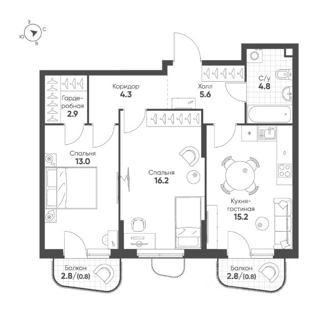 КВАРТИРА: Двухкомнатная квартира с изолированными комнатами. Отличная планировка, окна выходят на разные стороны. Большая кухня-гостиная- 16 квм. Отличный вариант для семьи с детьми! В квартире остается современный кухонный гарнитур со встроенной техникой варочная поверхность, духовой шкаф, посудомоечная машина), шкаф купе в спальне, распашной шкаф в прихожей, встроенные и навесные шкафы в ванной. Санузел в квартире отделан современными материалами, плитка керамогранит, теплый пол, качественная сантехника. Второй санузел оборудован под хоз. помещение. Квартира очень теплая и светлая.