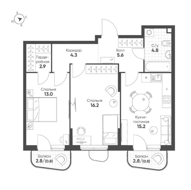 Присмотритесь к евро-3-комн. квартире в новом ЖК Весна от застройщика Атомстройкомплекс.