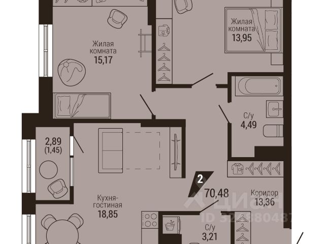 В квартире комфортная планировка: просторная кухня-гостиная 41,8 м2, спальня с зоной кабинета 15,3 м2, в спальне большой шкаф-купе, два санузла (один с ванной, второй с душевой кабиной), гардероб. Ремонт закончен в ноябре 2024.