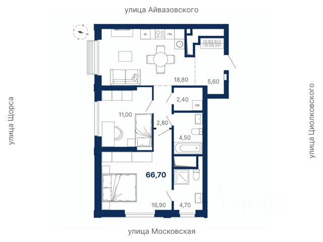В квартире выполнен качественный ремонт по индивидуальному дизайн-проекту.