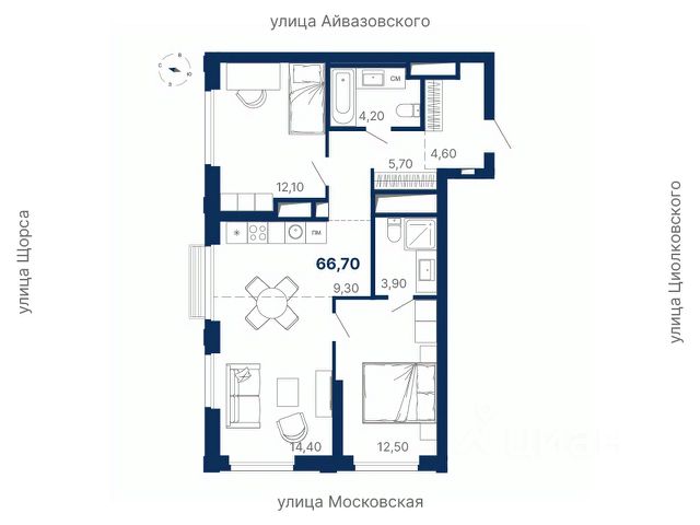 Квартира расположена в секции ближе к набережной.