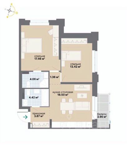 В квартире все помещения раздельные: большая кухня-гостиная, две спальни, хоз комната, санузел.большая лоджия. Все пространство квартиры можно использовать функционально.