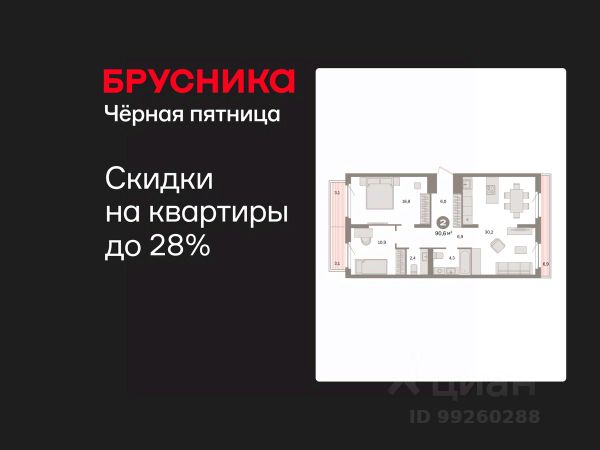 Торопитесь оформить бронирование, пока действует скидка! Период предложения ограничен! Стоимость квартиры указана со скидкой, ваша экономия составит 380,000 RUB. По всем вопросам обращайтесь в офис продаж, наши менеджеры вам все расскажут! Продается двухкомнатная квартира от застройщика с предчистовой отделкой в ЖК "Квартал Траектория" на 8 этаже. Общая площадь: 75.9 кв.м. Высота потолков 2.82 м. Дом монолитный, многоподъездный, переменной этажности, от 7 до 16 этажей. Квартира находится в 4-й секции высотой 16 этажей в корпусе 1-2. На этаже 7 квартир. В подъезде 1 пассажирский и 1 грузовой лифт. Начало строительства - 4 квартал 2025 года. Окончание строительства - 4 квартал 2027 года. Оформление сделки по договору долевого участия. Квартира с кухней-гостиной и двумя спальнями в квартале "Траектория". Особенности планировки: второй санузел, гардеробная, вид во двор, разнесённые спальни, предчистовая отделка, балкон. квартиры в нашей базе: МНВ01-Ж12.8.6. Квартал "Траектория" строится в границах улиц Билимбаевской, Расточной, Монтажников и Маневровой Раньше здесь находился оборонный завод 5-ЦАРЗ, основанный в 1945 году. После войны он ремонтировал военную и грузовую технику — от "Виллисов" и "Студебекеров" до советских ЗИС-5 и ГАЗ-67. Сортировка — район с развитой инфраструктурой, обжитыми жилыми кварталами разных эпох и большим количеством парков. До центра Екатеринбурга — 20 минут на машине. Туда же можно отправиться на автобусе: ближайшая остановка общественного транспорта — в 4 минутах от "Траектории". Рядом с "Траекторией" расположены магазины, торговый центр, детские сады, школы, поликлиники и полезные сервисы, а также другой проект Брусники — квартал "Депо". Если хочется развлечений, можно отправиться в ТРЦ "Карнавал" и парк с аттракционами "Таганская слобода" — дорога туда займёт не более 10 минут на машине. Квартал "Траектория" — первый этап комплексного развития территории, которую раньше занимали производственные здания. На месте бывших цехов Брусника создаст дружелюбную среду и комфортное пешеходное пространство для всего района. Для озеленения квартала мы подобрали больше 60 видов растений: ольху, липу, клён, иву, грушу, вишню, сирень, барбарис, гортензию, смородину, ирис, декоративные травы. Они цветут в разное время года и постоянно меняют настроение двора. В "Траектории" мы предусмотрели несколько общественных пространств, открытых для всех горожан: встречающий сквер, лесопарк у храма и событийный сквер между домами. Когда захочется тишины и уединения, можно устроить прогулку во внутренних дворах: в них нет машин и посторонних, зато много зелени, света и мест для отдыха. Каждый двор в квартале "Траектория" — продолжение квартиры, только под открытым небом. Здесь можно прогуляться босиком по траве, устроить утреннюю йогу, почитать книгу в гамаке или отправить детей поиграть, не переживая за их безопасность. Мы закроем дворы от машин, чтобы создать безопасную среду для отдыха. Применим натуральные материал