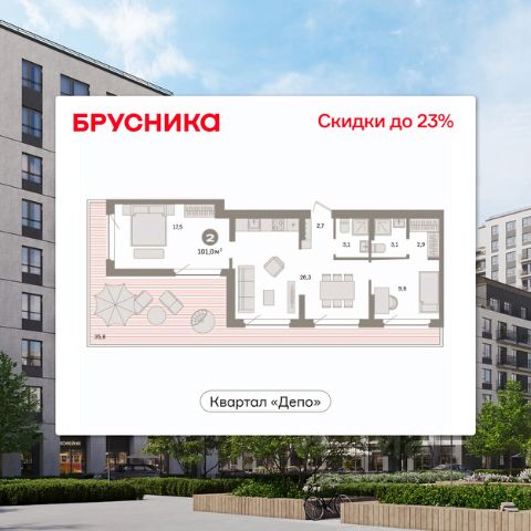 Торопитесь оформить бронирование по этой цене, период предложения ограничен! Стоимость квартиры указана со скидкой, ваша экономия составит 410,000 руб. По всем вопросам обращайтесь в офис продаж, наши менеджеры вам все расскажут. Квартира с кухней-гостиной и двумя спальнями в Бруснике в Академическом. Особенности планировки: балкон, вид во двор, гардеробная, мастер-спальня, окна на две стороны, предчистовая отделка, разнесённые спальни, терраса на крыше. квартиры в нашей базе: АКД05-Ж1.8.8. Квартал "Брусника в Академическом" расположен в границах улиц Ландау — Новая. Сегодня Академический — молодой, стремительно развивающийся район, обеспеченный всей необходимой инфраструктурой. С центром его связывают две магистральные улицы — Вильгельма де Геннина и Амундсена. Последняя в перспективе соединится с ЕКАДом, что позволит жителям быстрее выезжать из города. Согласно утвержденному проекту планировки территории в пешеходной доступности от квартала Брусники появятся две школы, рассчитанные на 1700 мест, и шесть детских садов. Рядом со строящимися домами расположены две крупные зелёные зоны — Юго-Западный лесопарк и Преображенский парк. В школах раиона совместно с учеными УрО РАН будет реализован проект "Малая академия наук", предпогагающий регулярные экскурсии в отраслевые институты и лаборатории, участие в научных конференциях и мастер-классах. Также в Академическом уже построены, теннисная академия и дворец дзюдо, крупные ТРЦ "Краснолесье" и ТРЦ "Академический", гипермаркет "Лента", в планах — организация ИT-кластера и новых филиалов НИИ. Камерные дворы квартала закрыты от машин. По нашим стандартам 70% их территории покрывает зелень. Деревья, кустарники и травы подобраны таким образом, чтобы в каждый сезон двор оставался красивым и имел свой цвет. Каждый двор разделён на зоны. В одной расположены детские площадки, в другой — места для спорта и тихого отдыха взрослых. Особенность ландшафта дворов — дождевые сады, снижающие нагрузку на ливневую канализацию. Они впитывают сток с крыш и тротуаров, фильтруют его в специально подобранном субстрате и отправляют в пруд. #25o51W