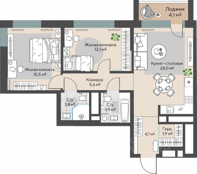 Жилой квартал "К100" на Космонавтов, 100 будет состоять из трех монолитно-кирпичных домов, объединенных общим двором. Застройщик компания "Практика". Планировки начинаются от 44,8 м² и доходят до 159,5 м². На каждом этаже располагается от восьми квартир классического и евроформата от двух до пяти комнат. Застройщик предлагает два вида отделки: white box и чистовую. Есть возможность перепланировки. Двор с ландшафтным озеленением разделен на три зоны. Для детей игровые площадки с меловыми досками и уличными шахматами, для взрослых лаунж-зона с креслами и столиками для отдыха, для спортсменов воркаут-площадка. На первом этаже лобби-клуб с игровыми комнатами, залом для йоги, коворкингом и мини-кинотеатром, колясочные и велосипедные помещения. Для автомобилистов предусмотрены гостевые места и подземный паркинг с доступом на лифте. На всей территории жилого комплекса установят видеонаблюдение. В доме будет работать консьерж-сервис в режиме 24/7. Дополнительные услуги включают клининг, выгул домашних животных, доставку еды из ресторанов и вызов такси. Также предусмотрена система "Умный дом". Рядом с жилым комплексом находятся сосновый бор, школы, детские сады, медицинские учреждения, торговые центры и супермаркеты, остановки общественного транспорта и станция метро. В шаговой доступности от дома откроется новый корпус уникальной гимназии "Арт-Этюд" — многопрофильного центра общего и художественного образования для детей от 3 до 18 лет. Строительство первой очереди жилого квартала "К100" на Космонавтов, 100 завершится в четвертом квартале 2026 года.