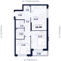 Квартира 79 в подъезде 1. Квартал, в котором рациональность соединяется с творчеством, а архитектурная выразительность — с современными технологиями комфорта. Эффективные планировки, двор-сад без машин, двухуровневая подземная парковка и коммерческие помещения на первых этажах создают функциональную основу комплекса. Статус подчеркивает парадный вестибюль с ресепшн, а художественные акценты в общественных пространствах формируют атмосферу, вдохновляющую на новые идеи.
