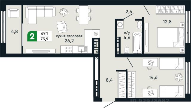 | 🔷 Средняя цена за м2: | 129,5 тыс. руб./м² |