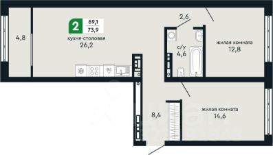 Продается 2-к квартира в жилом комплексе Центральный 5