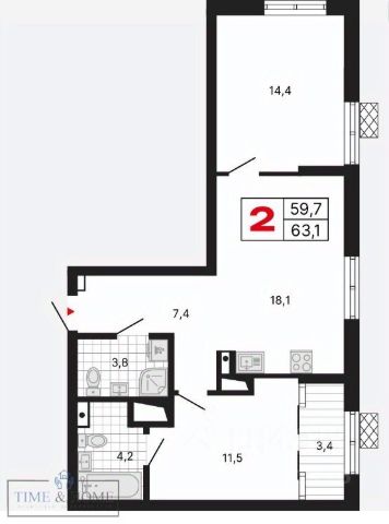 ID объекта в нашей базе: 938 2-комнатной квартиры в ипотеку Рядом с метро Геологическая.