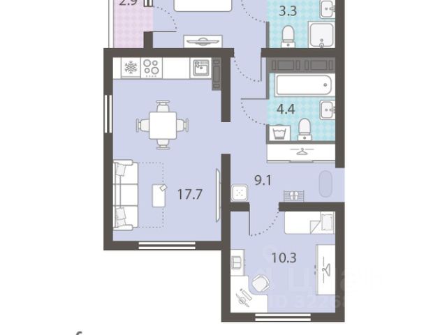 Отделка под чистовую. В санузле — монолитный потолок, на полу — гидроизоляция и стяжка, стены оштукатурены. В одном санузле установлены унитаз и раковина. В остальных помещениях потолок — монолит, на полу — стяжка, стены оштукатурены.