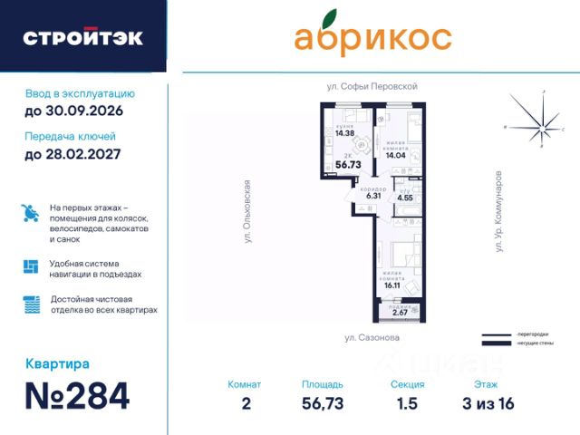 ЖК "Абрикос" ЖК "Абрикос", расположен в районе Новая Сортировка по адресу ул. Софьи Перовской, д. 106а. Познакомьтесь с "Абрикосом" поближе. Мы создали его таким, чтобы вы были довольны всем, а ваша жизнь в нём была как сам этот фрукт: свежей, сочной, яркой и солнечной. Район Тихий микрорайон Новая сортировка на Северо-западе Екатеринбурга. 20 минут пешком до парка "Таганская слобода" 15 минут на машине до кольцевой дороги, а до центра — полчаса даже по пробкам 10 минут на машине до ТЦ "Карнавал" 7 школ и 11 детсадов поблизости 6 продуктовых магазинов рядом Двор Во дворе хорошо должно быть всем: детям — площадки по возрасту, взрослым — прогулочные дорожки. Но это не всё. Вместительная парковка вокруг ЖК Концепция "Двор без машин", когда можно заехать только для разгрузки и погрузки Закрытая территория с пропускной системой Круглосуточное видеонаблюдение и освещение территории в ночное время Стритбольная площадка Подъезды Не подъезд, а парадная. Так говорят в Петербурге, но и в "Абрикосе" это слово приходит в голову. Просторные холлы с витражами и достойной отделкой. Доступ в подъезды на уровне земли — без барьеров Домофоны — в тёплых остеклённых тамбурах В каждом подъезде — грузопассажирский лифт Помещения для колясок и самокатов на 1 этаже Удобная навигация с номерами этажей и квартир Планировки Наш подход к проектированию называется "Разумные метры". Это значит не только исходить из площади, но и учитывать число жильцов и их потребности. Объединённые кухни-гостиные для простора и общения 3D-модели с вариантами обстановки Отказ от бесполезных "мёртвых" зон Отделка В ЖК "Абрикос" мы позаботились о чистовой отделке, чтобы ваш переезд прошёл быстро и не вызвал лишних хлопот. На полу в комнатах, прихожих и кухнях — прочный водостойкий ламинат, в санузлах — керамическая плитка, потолки — натяжные Межкомнатные двери и усиленная сейф-дверь на входе в квартиру В санузлах установлены раковины и унитазы, а во всей квартире — розетки и выключатели Радиаторы с терморегуляторами и горизонтальной разводкой, двухкамерные стеклопакеты с приточными клапанами вентиляции