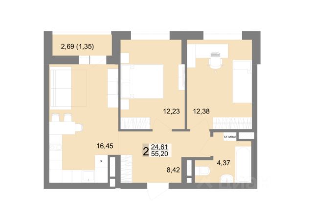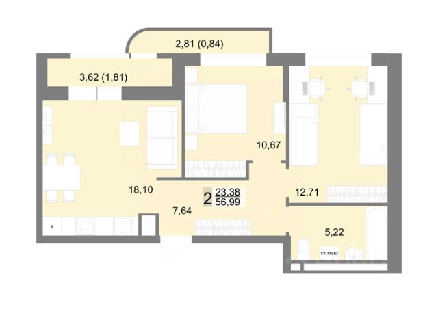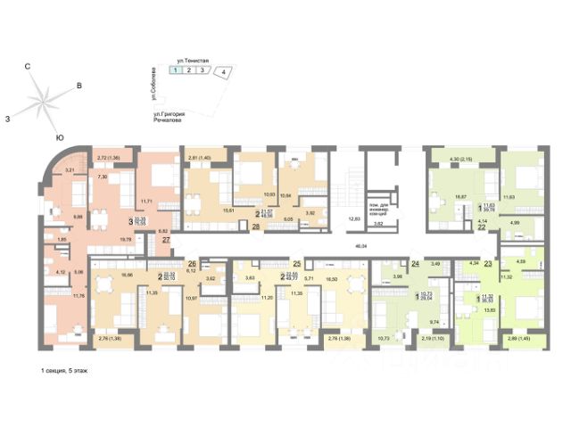 Продаётся 2-комнатная квартира в строящемся доме (Дом 1Г), срок сдачи: III-кв. 2026, общей площадью 54.07 кв.м., на 5 этаже. с Квартал расположен между двумя микрорайонами - Академический и Широкая речка на пересечении улиц Тенистая-Краснолесья-Соболева. Вы сможете пользоваться преимуществами сразу двух районов! 30 минут до центра города на машине, 9 минут до Объездной дороги, если хочется выехать на природу. В шаговой доступности есть несколько школ, детских садов и спортивных секций. А еще один детский сад на 350 мест уже построен на территории самого квартала. Большой двор, разделен на рекреационные зоны. Есть площадки для малышей и подростков с безопасным покрытием, зоны ворк-аута для предпочитающих здоровый образ жизни, прогулочные дорожки для бесед с друзьями или соседями. Безопасность - важное преимущество эко-квартала. Вход на территорию осуществляется с помощью Face ID или через мобильное приложение. Входные группы оформлены в соответствии с архитектурной концепцией всего квартала, ведь всегда приятно заходить в красиво оформленный подъезд. На всех этажах предусмотрена навигационная система, чтобы ваши гости точно не заблудились! В третьей очереди квартала "На Тенистой" есть несколько уникальных планировок, в том числе с мастер-спальнями, с открытыми балконами, с панорамным остеклением лоджии. А чтобы вы точно подобрали то, что по душе, в продаже представлены все виды комнатности - от студий до трехкомнатных. Мы за быстрый переезд, поэтому все квартиры сдаются с отделкой "под ключ": поклеены обои под покраску, постелен ламинат, установлены окна, обустроен санузел, поставлены счетчики, проведена разводка. До встречи на Тенистой. Здесь всегда хорошо! Окончание строительства: III квартал 2026г.
