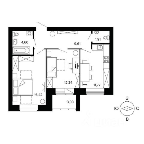 Для данного варианта квартиры возможно заказать евро ремонт от Застройщика.