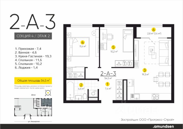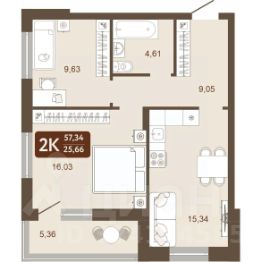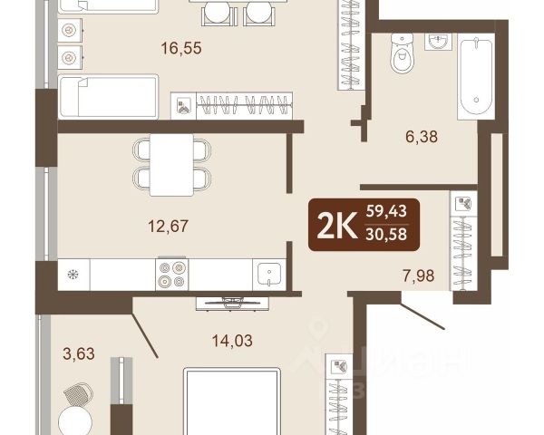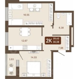 Общая площадь - 59,29 м2