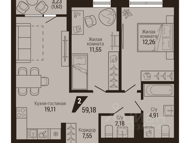 Продаётся 2-комнатная квартира в строящемся доме (Дом 6), срок сдачи: III-кв. 2027, общей площадью 52.1 кв.м., на 6 этаже. Расположение, транспортная доступность