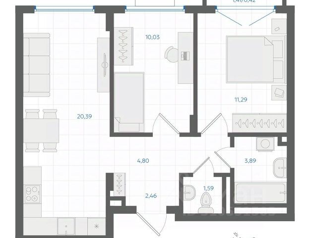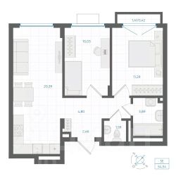 • ✅ Минимальная площадь: 34,4 м²