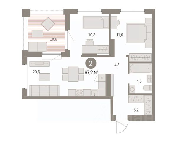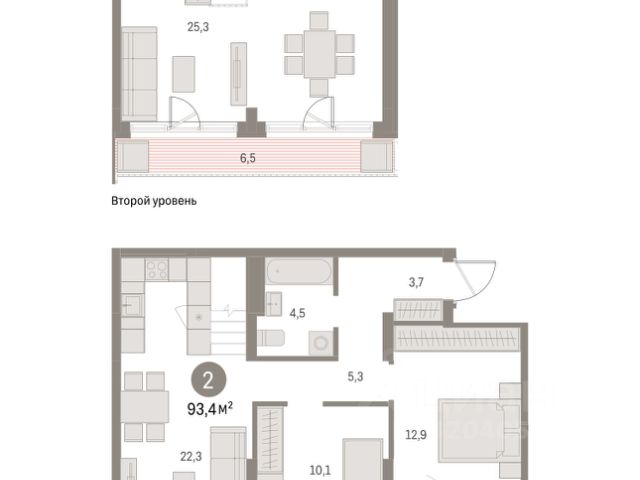 Двухуровневая квартира с кухней-гостиной и двумя спальнями в районе Шишимская горка. Особенности планировки: гардеробная, двухуровневая, лоджия, разнесённые спальни, предчистовая отделка, мастер-спальня, терраса на крыше.