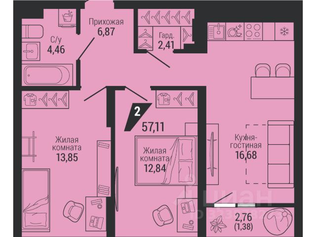 2-комн. квартира от застройщика с предчистовой отделкой в ЖК "Астон.Время" на 6 этаже. Общая площадь: 63.66 кв.м., жилая: 26.8 кв.м., площадь просторной кухни-столовой: 20.5 кв.м. Квартира угловая, очень светлая, естественная вентиляция при открытии окон. В квартире два балкона, один совмещенный и один раздельный санузел. Высота потолков 2.7 м.
