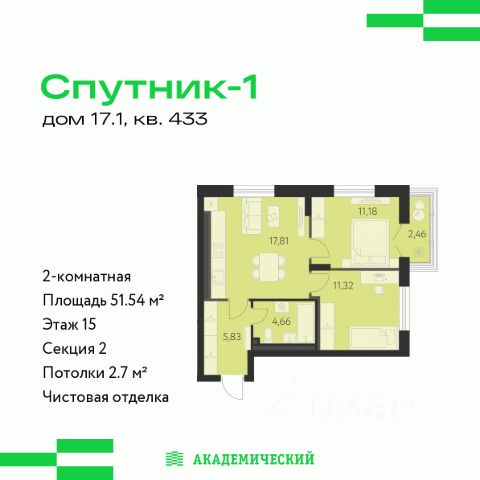 Предлагаю квартиру в новом современном и красивом районе Академический , от одного из лучших застройщиков г. Екатеринбурга БРУСНИКА.