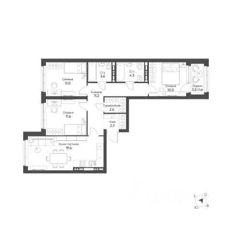 на 4 этаже, в 9 этaжной ceкции, что создат атмосферу уединения и спокойствия. На этаже, расположено всего 3 квартиры.