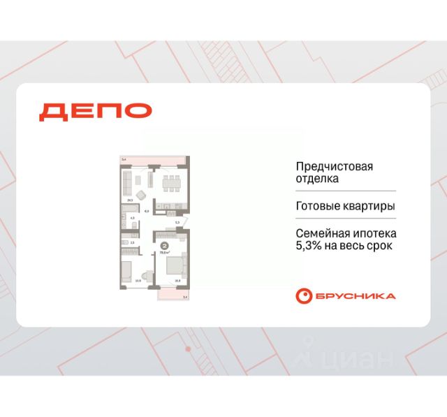 Успейте оформить бронирование по акционной цене! Срок предложения ограничен! Стоимость квартиры указана со скидкой, ваша экономия составит 280,000 RUB. Звоните, мы вам все подробно расскажем! Квартира с кухней-гостиной и двумя спальнями в квартале "Депо". Особенности планировки: гардеробная, разнесённые спальни, предчистовая отделка, мастер-спальня, балкон. квартиры в нашей базе: ДЕП07-Ж6.9.2. Квартал "Депо" расположен в активно развивающейся части Сортировки, на месте, где раньше был завод "Электротранс". Преимущества Сортировки — развитая инфраструктура. В пешей доступности — супермаркеты, остановки городского транспорта, поликлиники, детские сады, школы, гимназии, торговые центры, автоцентры, рынок с большим и доступным по стоимости выбором товаров, парк РЖД и парк с аттракционами Таганская Слобода. Квартал "Депо" расположен в границах улиц Пехотинцев — Таватуйская — Сортировочная — Новая (проектируется). Благоустройство квартала основано на трёх принципах. Первый — особое внимание к воде. Архитекторы Брусники создадут внутри застройки систему дождевых садов, которые будут фильтровать сток (в том числе с крыш зданий) и снижать нагрузку на ливневую канализацию . Второй принцип — разнообразие. Мы высадим на улицах ивы, липы, яблони разных сортов, спиреи, лапчатку и дерен, а во дворах — березы, липы, черёмухи, пузыреплодник, кизильник и манчжурский орех, который в Екатеринбурге почти не представлен. Третий принцип — зонирование. Центральный бульвар мы насытим площадками для игр детей и спокойного отдыха взрослых, на площади перед детским садом расположим окруженные деревьями плэйхабы, летние веранды кафе, открытое пространство с запоминающимся артом. #zscTl2