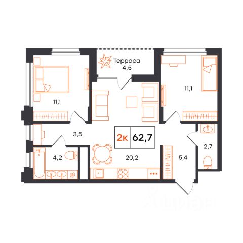 Просторная 2-комн. квартира с функциональной планировкой, сдается в предчистовой отделке в жилом комплексе Александровский. Александровский семейный жилой комплекс, в экологичном районе Нижнего Тагила, который соединяет в себе спокойствие природы и активность городской жизни. Дом переменной этажности где каждая квартира будет наполнена светом, а из окна открывается завораживающий вид на Корабельный мыс. Архитектура Современная архитектура проекта основана на простых геометрических формах с выверенными пропорциями. Фасады выполнены в спокойных природных тонах. Подсветка фасада до третьего этажа создает уютную атмосферу во время вечернего променада. За счет переменной этажности фасады дома приобретают особую динамику. Благоустройство Благоустройство выполнено по ландшафтному дизайну. В проекте предусмотрены: коммерческие помещения, закрытая дворовая территория под видеонаблюдением, спортивные и детские площадки, зоны отдыха для взрослых, кладовые, 2 грузопассажирских лифта, колясочные. Безбарьерный вход в дизайнерские парадные, с теплым тамбуром и мягкими зонами ожидания, дизайнерское освещение.
