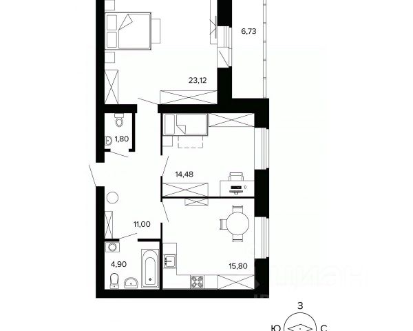 - просторная остеклённая лоджия,