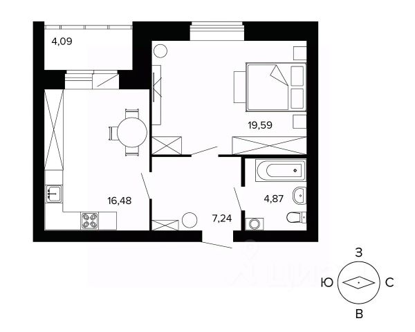 - В квартире выполнена перепланировка из 2-комнатной в 3-комнатную. Общая площадь всех помещений с учетом лоджии 54,1 кв.метров.