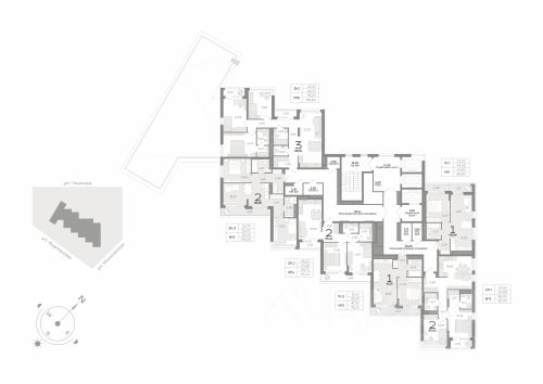 Квартал состоит из четырех 27-этажных домов. В домах — уютные студии, однокомнатные, двухкомнатные, семейные трехкомнатные квартиры. А для ценителей редких форматов квартиры с террасами. Парадный вестибюль с камином и кафе, двор с лаунж-зонами, фонтаном, сенсорным садом, детскими и спортивными площадками внутри.