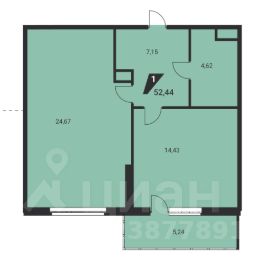 Общая площадь всех помещений с учетом лоджии - 53,6 метров кв.