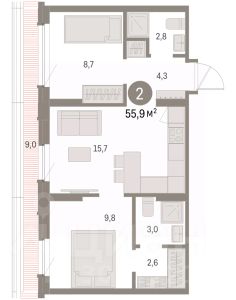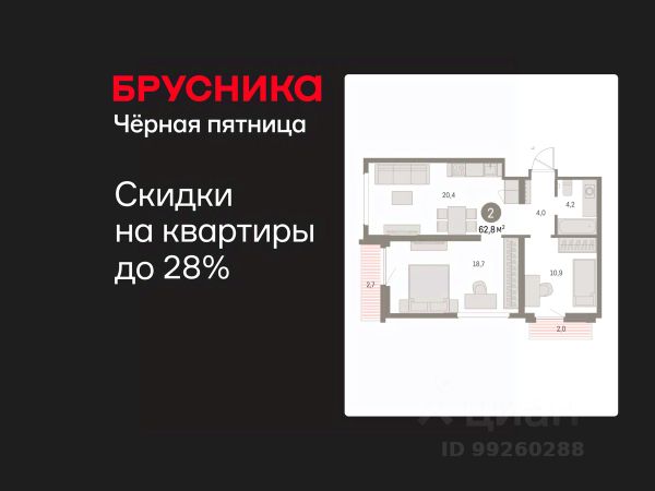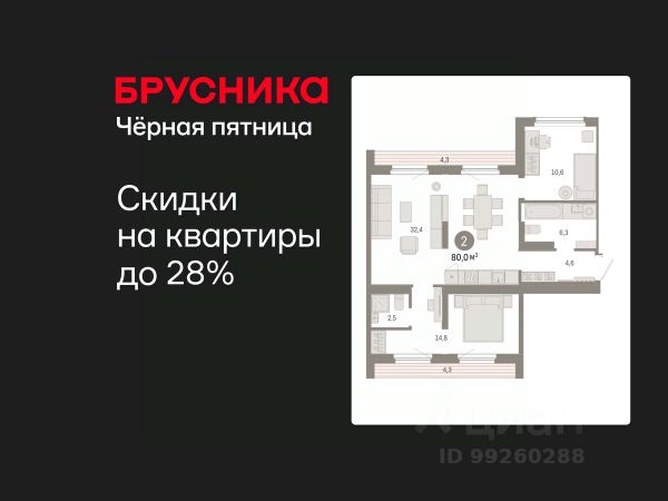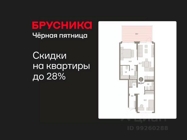 Спешите забронировать по этой цене! Срок предложения ограничен! Стоимость квартиры указана со скидкой, ваша экономия составит 410,000 RUB. По всем вопросам обращайтесь в офис продаж, наши менеджеры вам все расскажут! Квартира с кухней-гостиной и двумя спальнями в Бруснике в Академическом. Особенности планировки: гардеробная, вид во двор, разнесённые спальни, предчистовая отделка, мастер-спальня, балкон. квартиры в нашей базе: АКД05-Ж1.4.2. Квартал "Брусника в Академическом" расположен в границах улиц Ландау — Новая. Сегодня Академический — молодой, стремительно развивающийся район, обеспеченный всей необходимой инфраструктурой. С центром его связывают две магистральные улицы — Вильгельма де Геннина и Амундсена. Последняя в перспективе соединится с ЕКАДом, что позволит жителям быстрее выезжать из города. Согласно утвержденному проекту планировки территории в пешеходной доступности от квартала Брусники появятся две школы, рассчитанные на 1700 мест, и шесть детских садов. Рядом со строящимися домами расположены две крупные зелёные зоны — Юго-Западный лесопарк и Преображенский парк. В школах раиона совместно с учеными УрО РАН будет реализован проект "Малая академия наук", предпогагающий регулярные экскурсии в отраслевые институты и лаборатории, участие в научных конференциях и мастер-классах. Также в Академическом уже построены, теннисная академия и дворец дзюдо, крупные ТРЦ "Краснолесье" и ТРЦ "Академический", гипермаркет "Лента", в планах — организация ИT-кластера и новых филиалов НИИ. Камерные дворы квартала закрыты от машин. По нашим стандартам 70% их территории покрывает зелень. Деревья, кустарники и травы подобраны таким образом, чтобы в каждый сезон двор оставался красивым и имел свой цвет. Каждый двор разделён на зоны. В одной расположены детские площадки, в другой — места для спорта и тихого отдыха взрослых. Особенность ландшафта дворов — дождевые сады, снижающие нагрузку на ливневую канализацию. Они впитывают сток с крыш и тротуаров, фильтруют его в специально подобранном субстрате и отправляют в пруд. #2SoweD