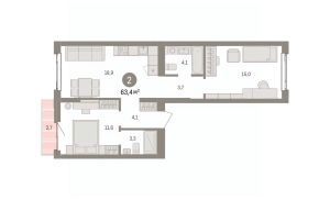 Спешите забронировать по этой цене! Срок акции ограничен! Стоимость квартиры указана со скидкой, ваша экономия составит 360,000 RUB. Звоните, мы вам все подробно расскажем! 2-комн. квартира с предчистовой отделкой в ЖК "Квартал Траектория" на 4 этаже. Общая площадь: 61.9 кв.м., жилая: 20 кв.м., площадь просторной кухни-столовой: 21 кв.м. Квартира угловая, идеально подойдет любителям тишины и панорамных видов. В квартире одна лоджия, один совмещенный и один раздельный санузел. Высота потолков 2.82 м. Дом монолитный, многоподъездный, переменной этажности, от 7 до 25 этажей. Квартира находится в 3-й секции высотой 16 этажей в корпусе 1-1. На этаже 7 квартир. В подъезде 1 пассажирский и 1 грузовой лифт. Начало строительства - 4 квартал 2025 года. Окончание строительства - 4 квартал 2027 года. Оформление сделки по договору долевого участия. Квартира с кухней-гостиной и двумя спальнями в квартале "Траектория". Особенности планировки: второй санузел, гардеробная, стартовая цена, лоджия, разнесённые спальни, предчистовая отделка. квартиры в нашей базе: МНВ01-Ж3.4.4. Квартал "Траектория" строится в границах улиц Билимбаевской, Расточной, Монтажников и Маневровой Раньше здесь находился оборонный завод 5-ЦАРЗ, основанный в 1945 году. После войны он ремонтировал военную и грузовую технику — от "Виллисов" и "Студебекеров" до советских ЗИС-5 и ГАЗ-67. Сортировка — район с развитой инфраструктурой, обжитыми жилыми кварталами разных эпох и большим количеством парков. До центра Екатеринбурга — 20 минут на машине. Туда же можно отправиться на автобусе: ближайшая остановка общественного транспорта — в 4 минутах от "Траектории". Рядом с "Траекторией" расположены магазины, торговый центр, детские сады, школы, поликлиники и полезные сервисы, а также другой проект Брусники — квартал "Депо". Если хочется развлечений, можно отправиться в ТРЦ "Карнавал" и парк с аттракционами "Таганская слобода" — дорога туда займёт не более 10 минут на машине. Квартал "Траектория" — первый этап комплексного развития территории, которую раньше занимали производственные здания. На месте бывших цехов Брусника создаст дружелюбную среду и комфортное пешеходное пространство для всего района. Для озеленения квартала мы подобрали больше 60 видов растений: ольху, липу, клён, иву, грушу, вишню, сирень, барбарис, гортензию, смородину, ирис, декоративные травы. Они цветут в разное время года и постоянно меняют настроение двора. В "Траектории" мы предусмотрели несколько общественных пространств, открытых для всех горожан: встречающий сквер, лесопарк у храма и событийный сквер между домами. Когда захочется тишины и уединения, можно устроить прогулку во внутренних дворах: в них нет машин и посторонних, зато много зелени, света и мест для отдыха. Каждый двор в квартале "Траектория" — продолжение квартиры, только под открытым небом. Здесь можно прогуляться босиком по траве, устроить утреннюю йогу, почитать книгу в гамаке или отправить детей поиграть, не переживая за их безопасно Купить 2-комнатную квартиру в ипотеку в новостройке в районе Железнодорожный в городе Екатеринбург.