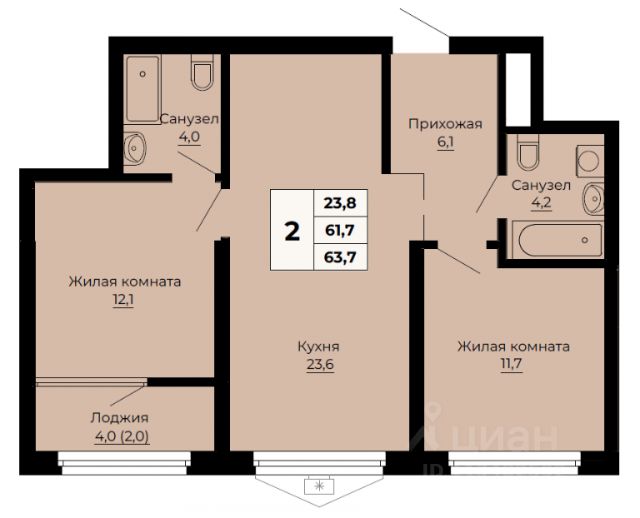 • ✓ В базе Циан 1,7 тыс. 2-комнатных квартир в новостройке с ипотекой в Екатеринбурге
