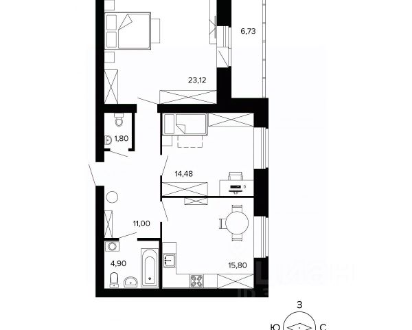Для данного варианта квартиры возможно заказать евро ремонт от Застройщика.