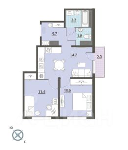 2-комн. квартира от застройщика с отделкой в ЖК "ДНК. Дом на Куйбышева" на 25 этаже. Общая площадь: 58.83 кв.м., жилая: 21.78 кв.м., площадь просторной кухни-столовой: 17.71 кв.м. Угловая квартира, окна oбecпeчивaют paвнoмepнoe ocвeщeниe в тeчeниe дня. В квартире одна лоджия, один совмещенный и один раздельный санузел. Высота потолков 2.7 м.